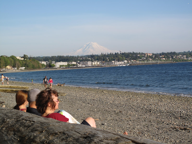 Then, we headed to see Brandon's mom for lunch/dinner. Brandon found this great beach for a picnic. Views of Mt. Rainier, a relatively uncrowded beach, and the warm sun.